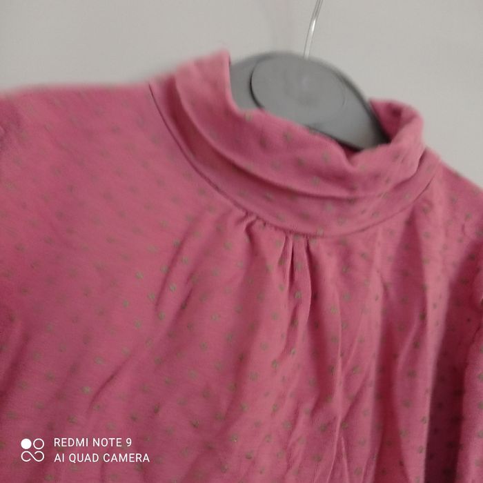 A pois dorés. Manches longues. Col roulé.