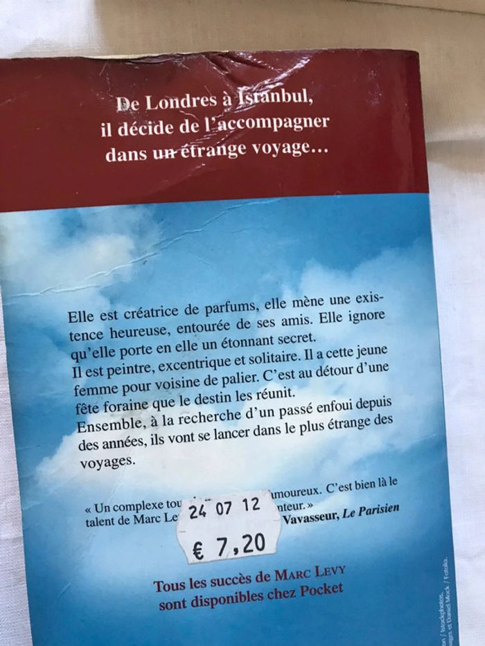 Lot de 3 livres pocket de Marc Levy : • Toutes ces choses qu'on ne s'est pas dites : en bon état - couverture et quelques pages un peu cornées • L'horizon à l'envers : en bon état - couverture légèrement usée • L'étrange voyage de Monsieur Daldry : état satisfaisant - couverture assez abimée Ma bibliothèque : #livressandrine27061987 > livraison via Mondial Relay ou Chronoshop > remise en main propre sur St Gratien #marclevy #livre #livredepoche #roman #marclevytoutesceschosesquonnesestpasdite #marclevyletrangevoyagedemonsieurdaldry #marclevylhorizonalenvers