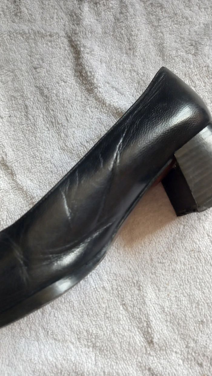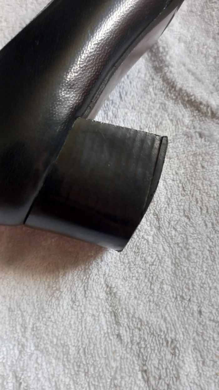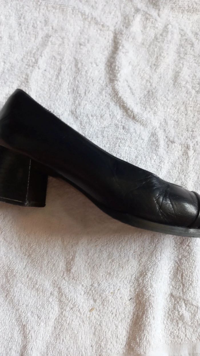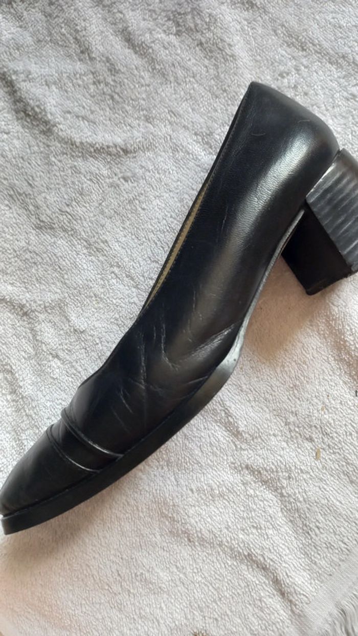 Chaussures en cuir noires avec petit talon carré. Bon état : le talon est affaissé sur le derriere et le cuir est legerement plié à certains endroits. Cf photo Taille 35 Sans boite d origine #chaussuresandrine27061987 #chaussuresatalons #chaussurestalons35