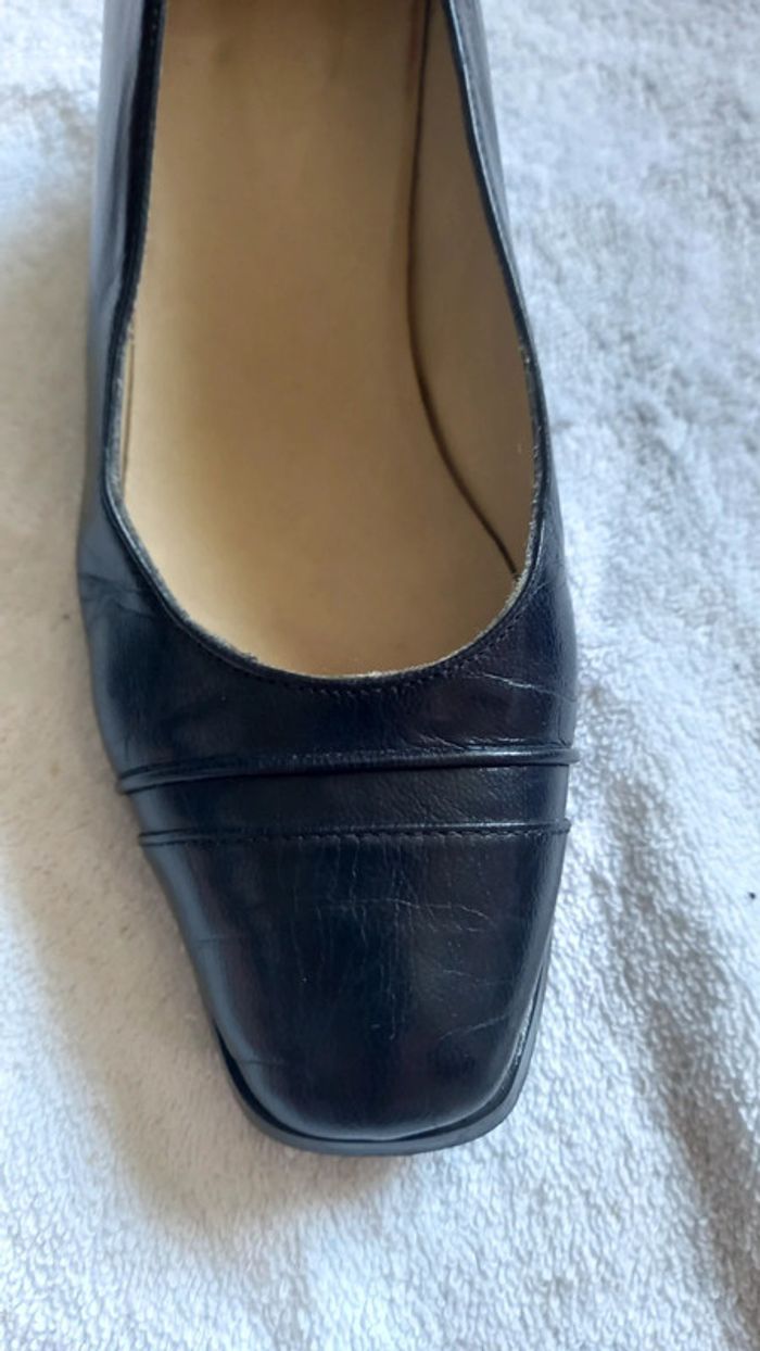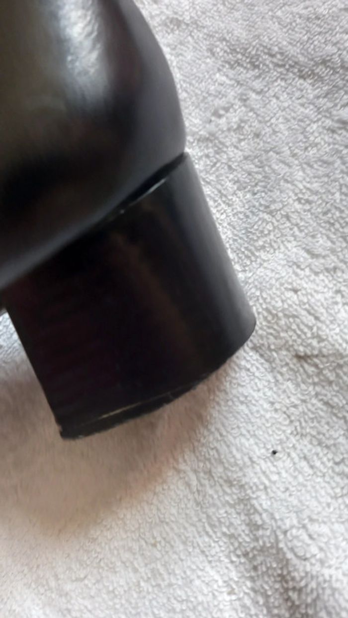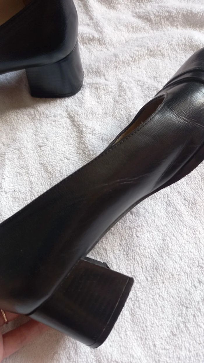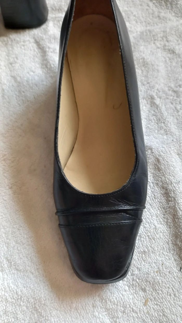 Chaussures en cuir noires avec petit talon carré. Bon état : le talon est affaissé sur le derriere et le cuir est legerement plié à certains endroits. Cf photo Taille 35 Sans boite d origine #chaussuresandrine27061987 #chaussuresatalons #chaussurestalons35