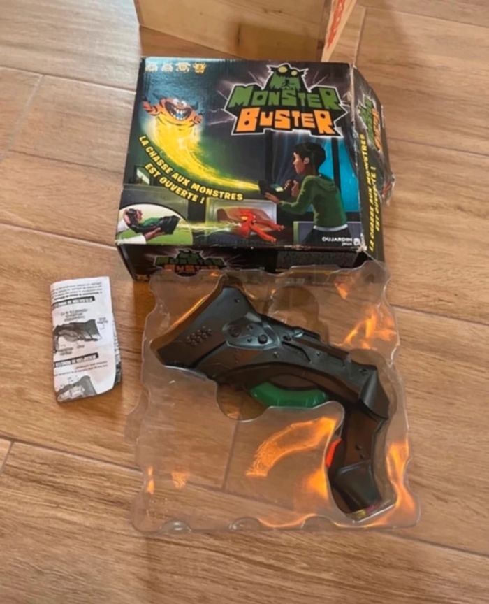 Jeu monster buster : chasse aux monstres A partir de 6 ans. Le carton a été rescotché voir photo Je laisse les piles dedans. A partir de 6 ans. Le carton a été rescotché voir photo Je laisse les piles dedans.