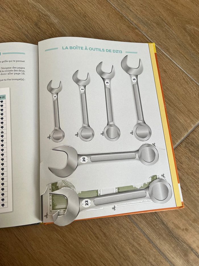 Livre enfant escape game à partir de 9 ans Un accessoire a été découpé (il est présent)