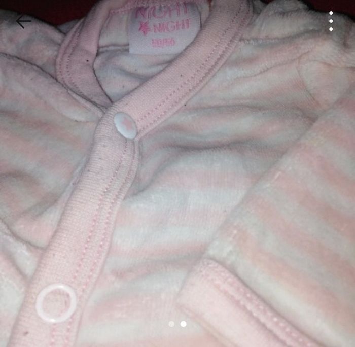 Très joli pyjama bébé fille taille 1 mois en velours rayé blanc et rose clair. Très bon état.