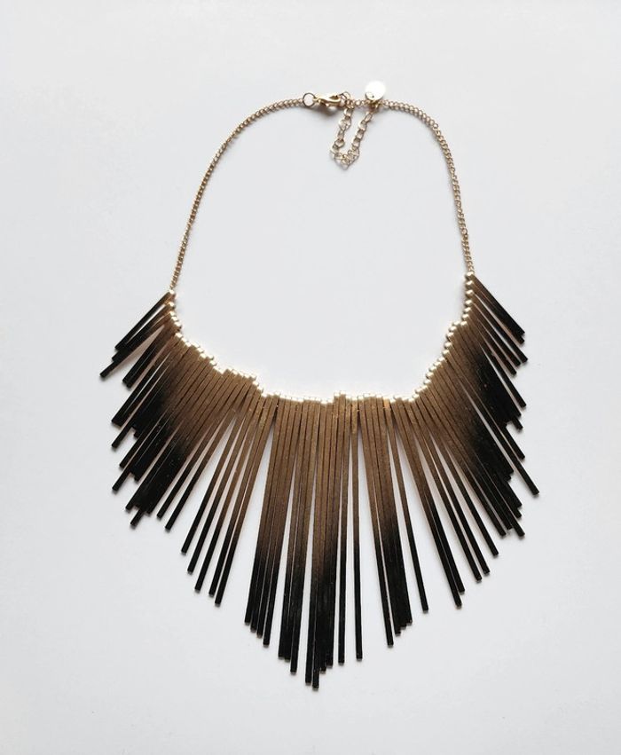 Collier avec un dégradé doré et noir de la marque Claire's Collier un peu abîmé au niveau de la couleur noir, les petits défauts de noir se voient sur la photo mais je peux prendre plus en détail au besoin En voir plus : #Fannydsnbijoux