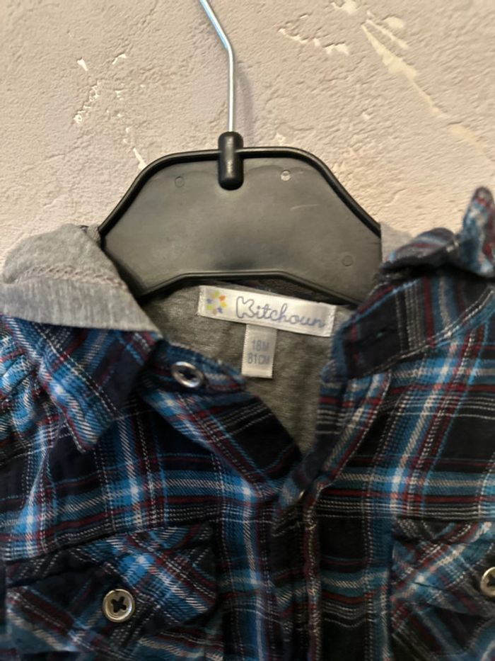 T-shirt manches longues à capuche style chemise taille 18 mois multicolore marque kitchoun en très bon état #18moisgarconchristelle7155