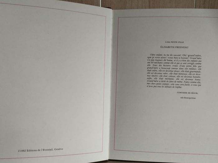 Comtesse de Ségur, née Rostopchine Les malheurs de Sophie Édition de l'Evantail 1982 Quelques tâches vu le grand âge. Bon état