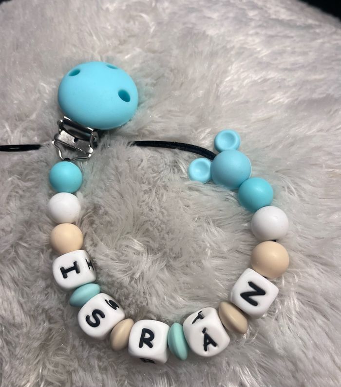 Si je ne répond pas n’hésitez pas à m’envoyer plusieurs fois des messages j’ai des problèmes avec l’application je reçois mal les messages , aimer ma publication ou ma page pour que je vous retrouve plus facilement merci beaucoup Attache tétine personnalisé en silicone ou en bois au souhait de l’acheteur . Personnalisable au choix de l’acheteur que ce soit la couleur comme le prénom ou le thème . Le fil est doublé pour plus de sécurité tout le long de l’attache tétine. N’hésitez pas à me demander et regarder mon dressing. Une photo vous sera envoyée avant l’expédition pour vous ayez un aperçu du rendu. Tous les produits sont réalisés avec du materiel spécial conçu aux bébés , enfants.