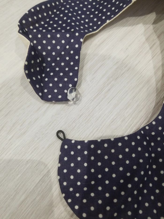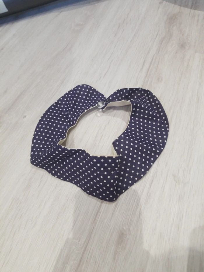 Petit col Claudine bleu marine a pois blancs d un côté ,écru de l autre En tres bon état