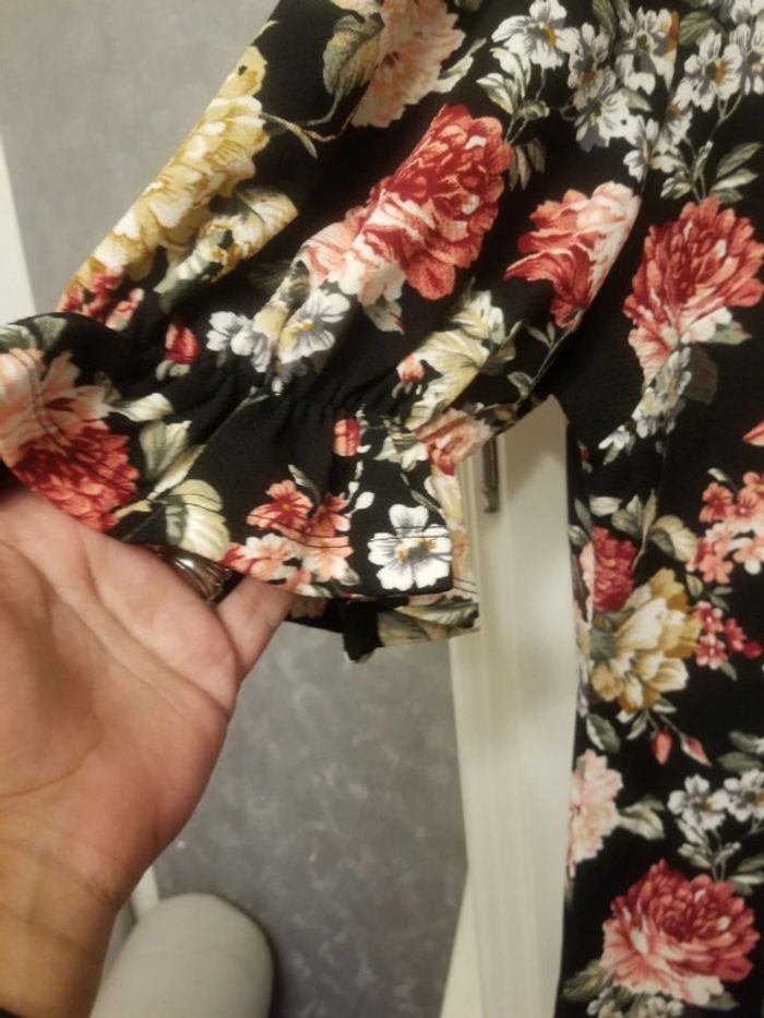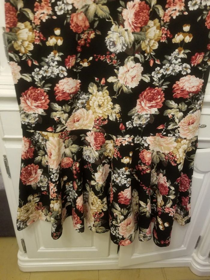 Robe longue fleurie t 50 neuve Noir rose Volant bas de manche et bas robe Matière élastique confortable