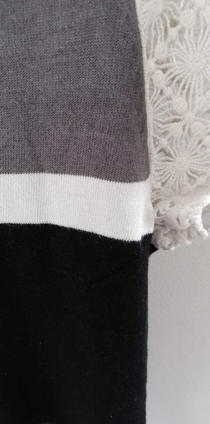 Haut en maille et crochet sur le haut. En excellent état mais minuscule tache sur la bande blanche sur le côté (cf photo, ne se voit quasiment pas). Taille 2.
