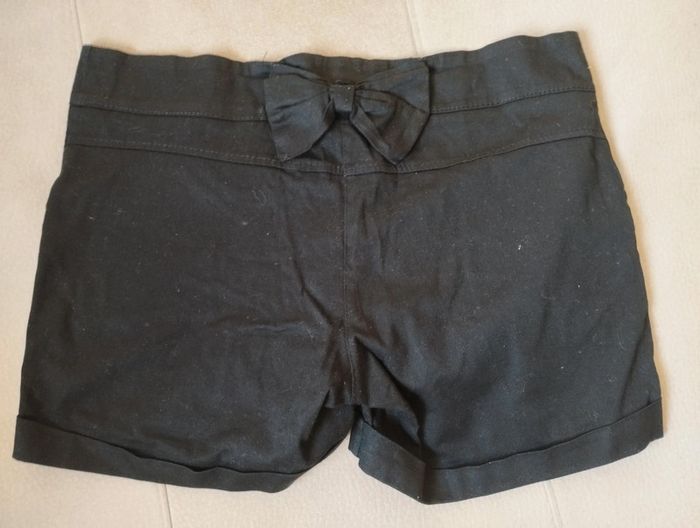 Short noir de soirée. Il a un nœud dans le dos. Décoration au niveau des poches.