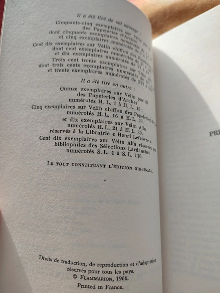 Cet ouvrage constitue l'édition originale. Éditions Flammarion 1966