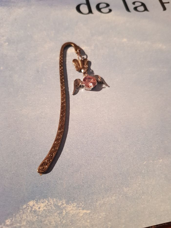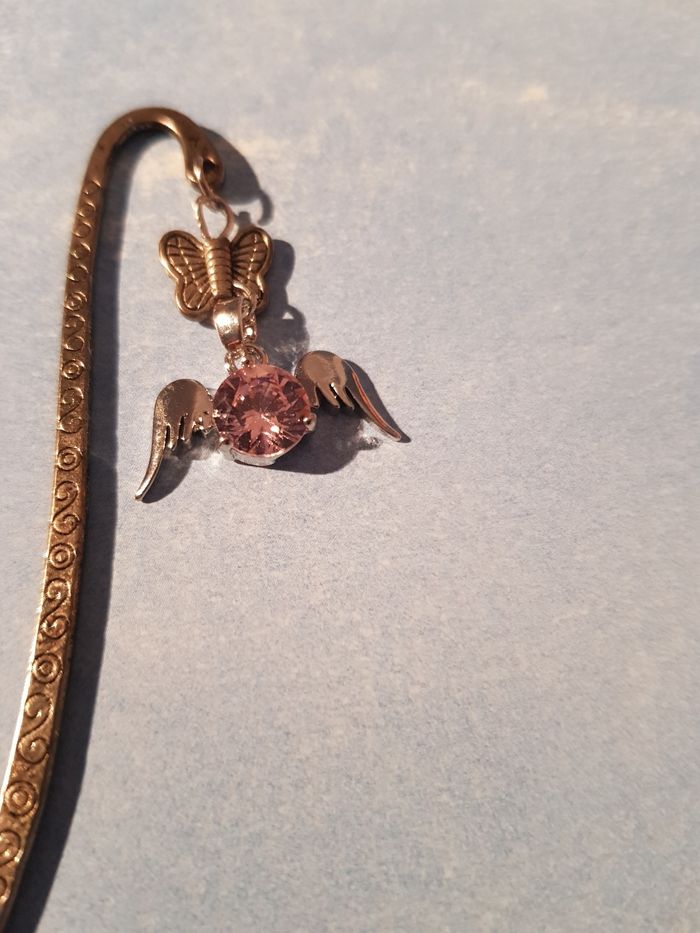 Marque-pages métal. Finition papillon et ailes d'ange avec strass rose. Irréprochable