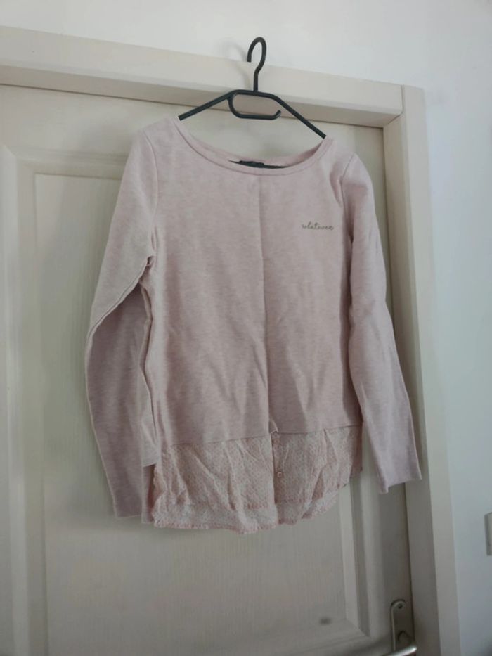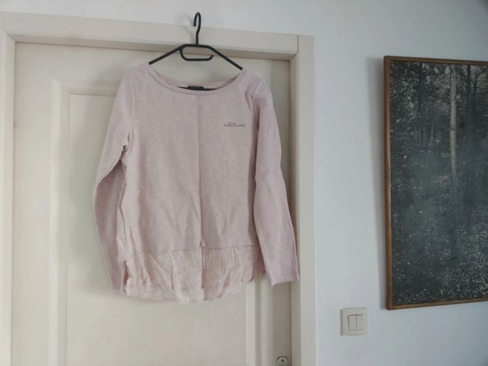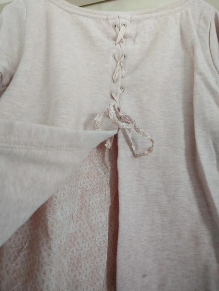 Sweat rose clair, avec blouse intégrée, lacets à nouer dans le dos. Taille M. Très peu porté mais pas repassé non plus 😂 Marque Bonobo Réduction sur les lots