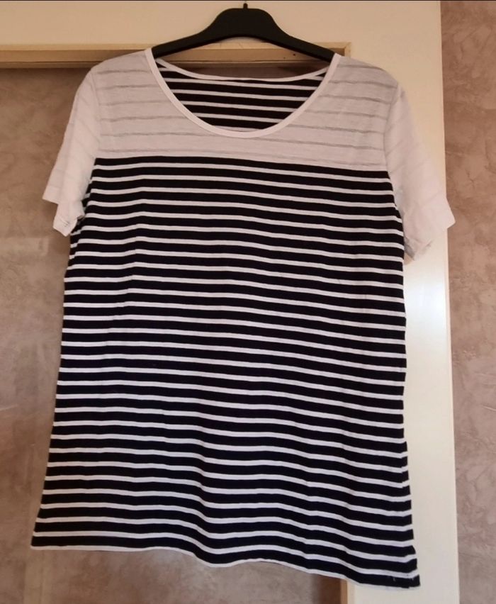 t-shirt manche courte femme bleu marine à rayure blanche taille 38/40 - photo numéro 1