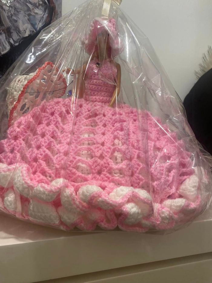 poupée, coussin, neuf en crochet