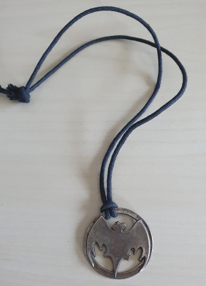 Collier cordelette noire et pendentif chauve souris métallique