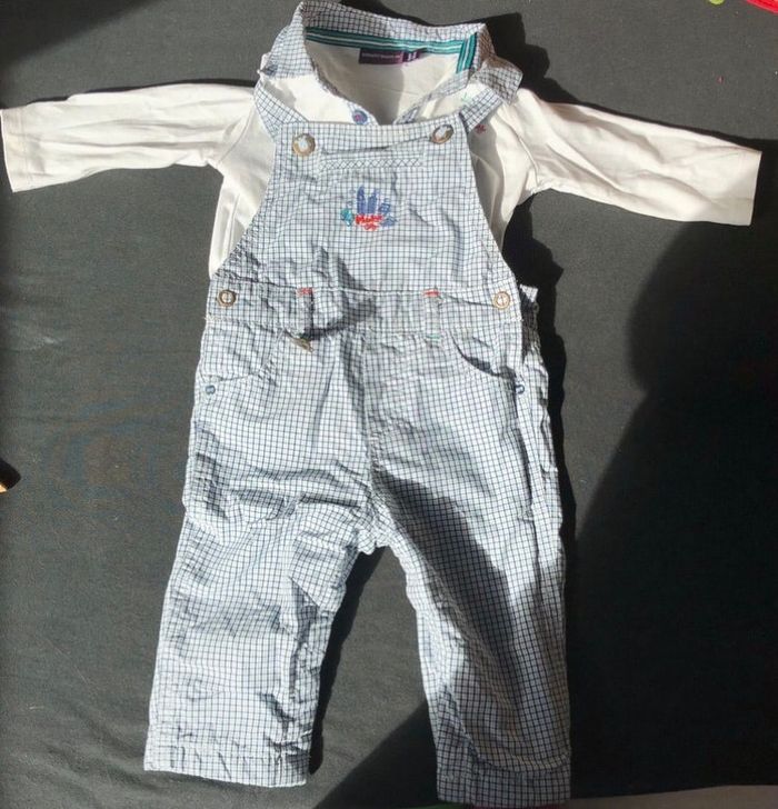 Ensemble Sergent Major composé d’une salopette et d’un haut à manches longues blanc. Ensemble en très bon état.