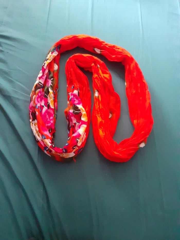 Echarpe légère orange fleurie