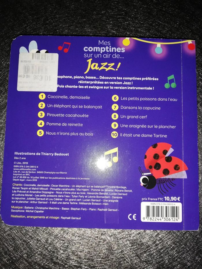 Mes comptines sur un air de jazz édition lito 10 comptines traditionnelles revisitées pour danser, s'amuser et chanter, sur des compositions musicales originales de Jazz. Des chansons interprétées par des enfants et réunies dans un CD, à écouter et chanter ! 978-2244306124