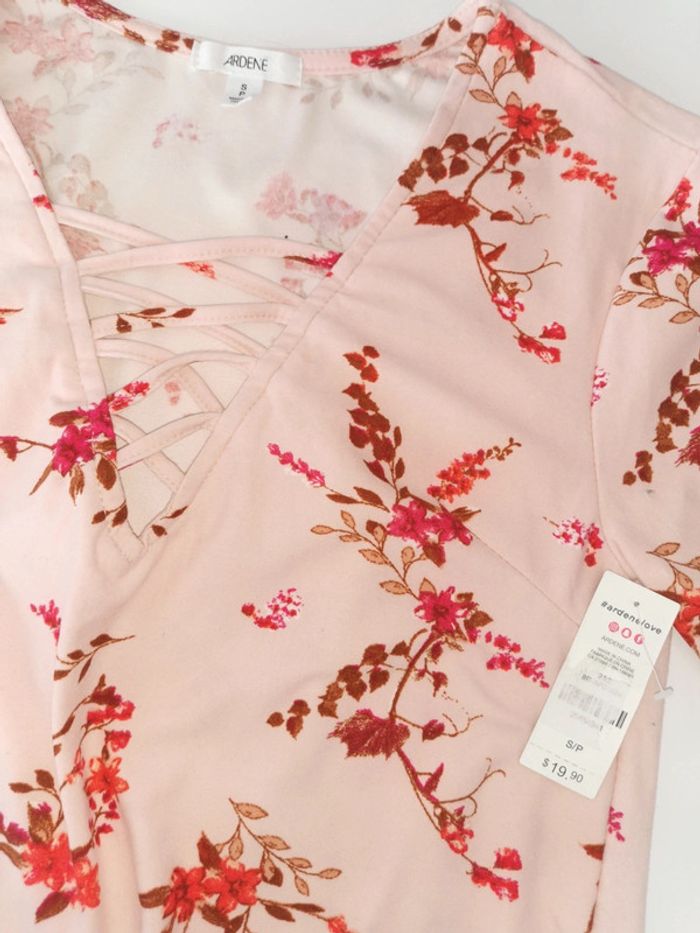 🙎‍♀️ ARTICLE NEUF AVEC ÉTIQUETTE 🙎‍♀️ Tee-shirt rose fleuri 🌺🌺🌺 Ardene 👩 Taille S/P américaine correspond à une taille XS • Matière: 92% polyester - 8% elasthanne • Tissu extensible tout doux • Col en V effet Laçage • Manches longues • Imprimé: fleuri 🌺🌺🌺 sur fond rose pâle • 📏 Mesure sous aisselles: 37 cm • 📏 Mesure épaules: 35 cm • 📏 Longueur: 64 cm 💰Prix boutique: 19.90💲 Parfait état👌, avec étiquette 🏷, jamais porté #SoStyLiFemmeTailleXS #SoStyLiFemmeTailleS 🟤