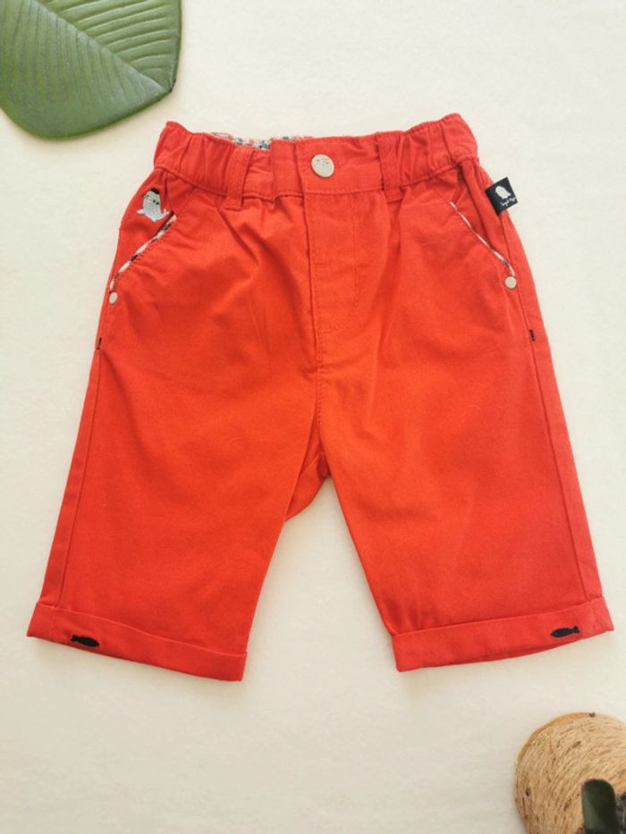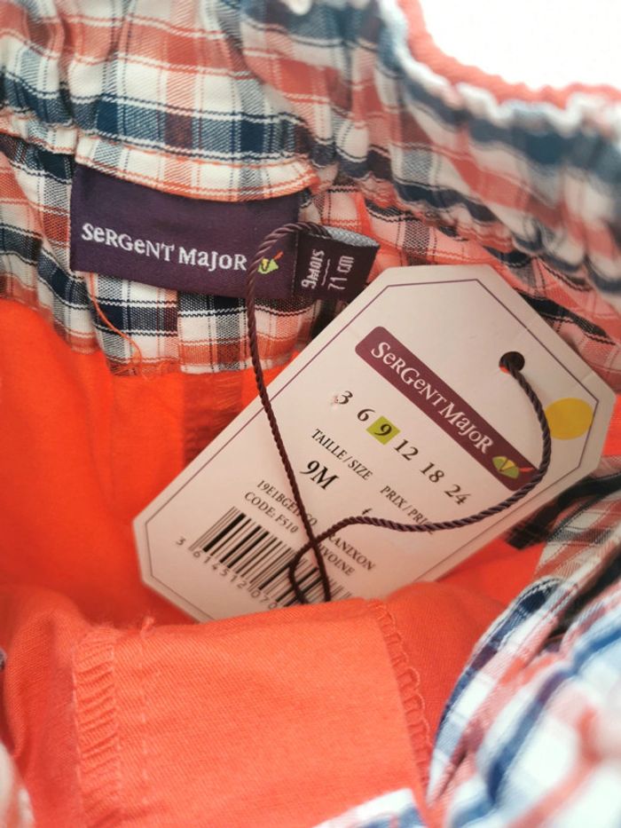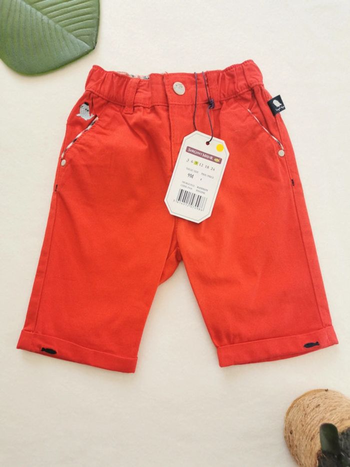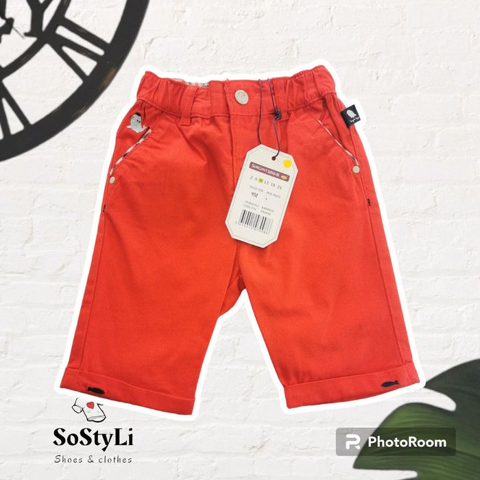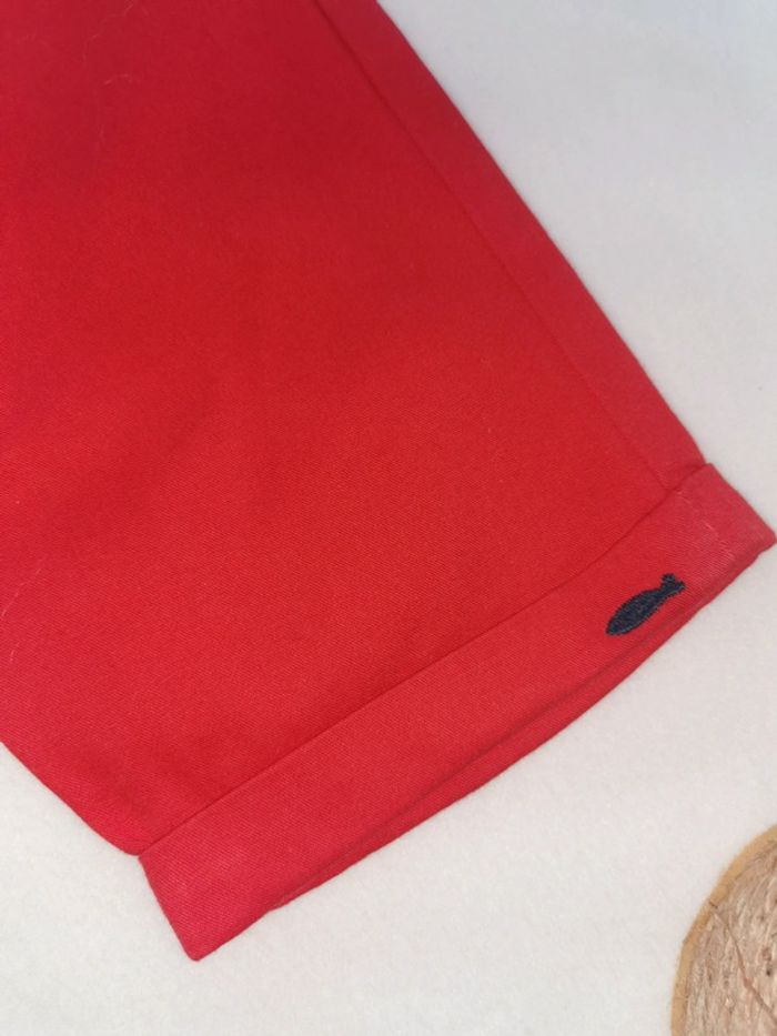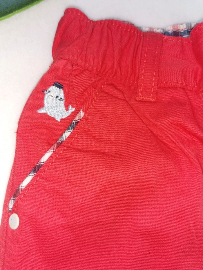 Pantacourt à revers 👶 Sergent Major Taille 9 Mois - 71 cm • Matière: 100% coton • Tissu léger • Taille elastiquée • Fermeture par 1 bouton pression • Passants pour ceinture • 2 poches avant • Broderies animaux marin 🐟🐠🐳 • Couleur: rouge 🔴 💰Prix boutique: 19.99€ Parfait état👌, avec étiquette🏷️, jamais porté #SoStyLigarçonTaille9Mois 💛