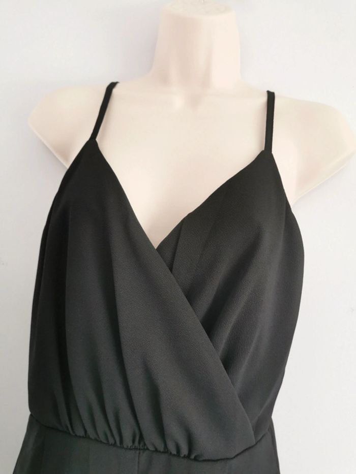 Combishort noire ⚫ 👩 Taille S • Tissu léger et fin • Doublé au niveau de la poitrine • Décolleté plongeant effet cache-coeur 💛 • Bretelles fines • Fermeture zippée à l'arrière • Couleur: noire ⚫ Parfait état👌, jamais portée #SoStyLifemmetailleS 🌫️