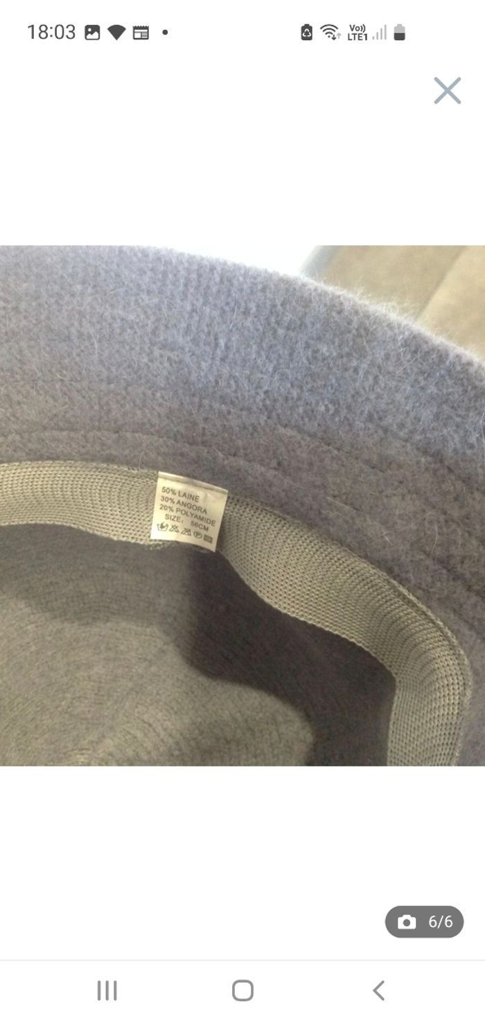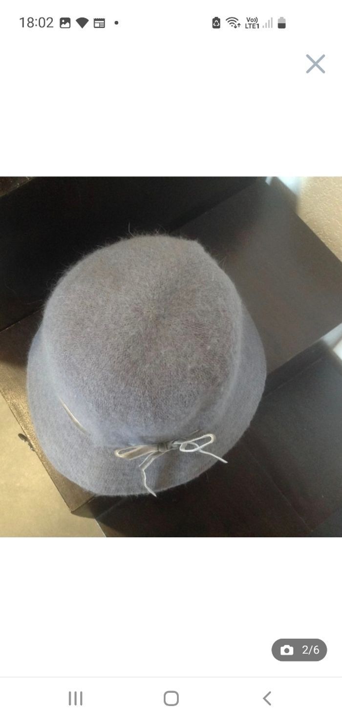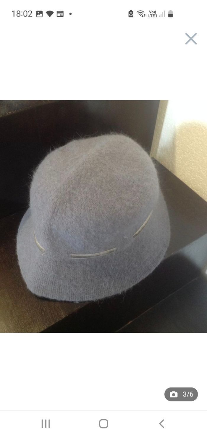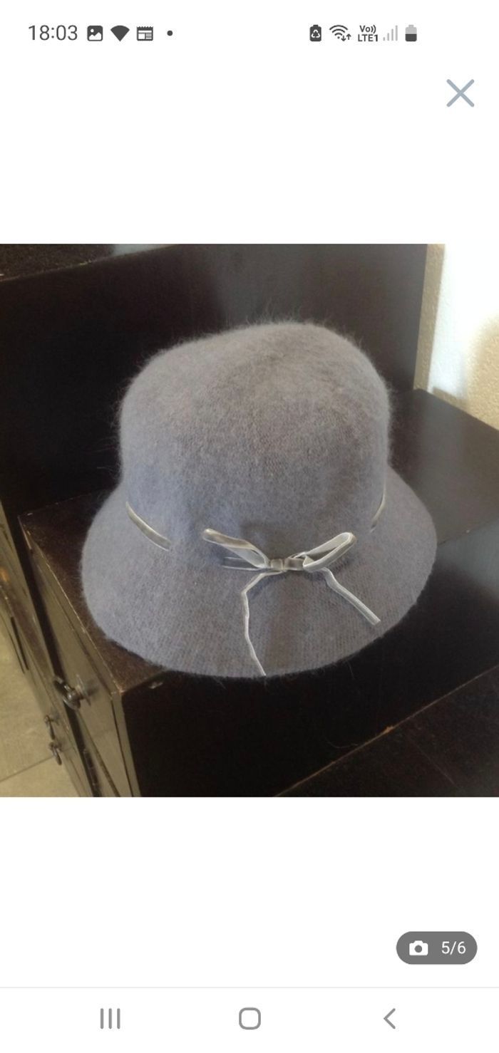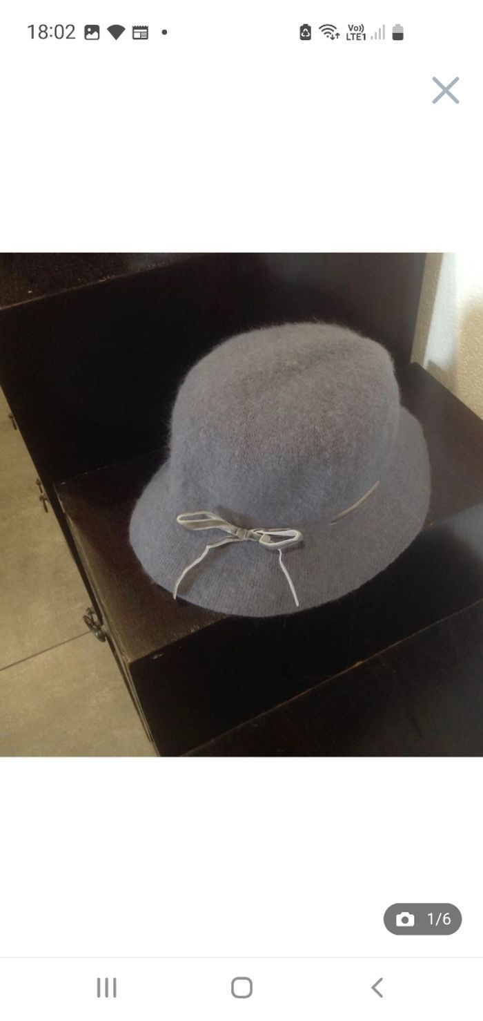 Chapeau cloche pour femme, de couleur grise, de tour de tête 56 cm, de marque Monoprix. Il est orné d'un ruban gris en velours qui fait le tour du chapeau, et d'un noeud devant. A la fois élégant et passe-partout et surtout très chaud. Confortable à porter et très doux au toucher. Style vintage. Composition : 50% laine, 30% angora, 20% polyamide. Neuf, jamais porté. Excellent état.