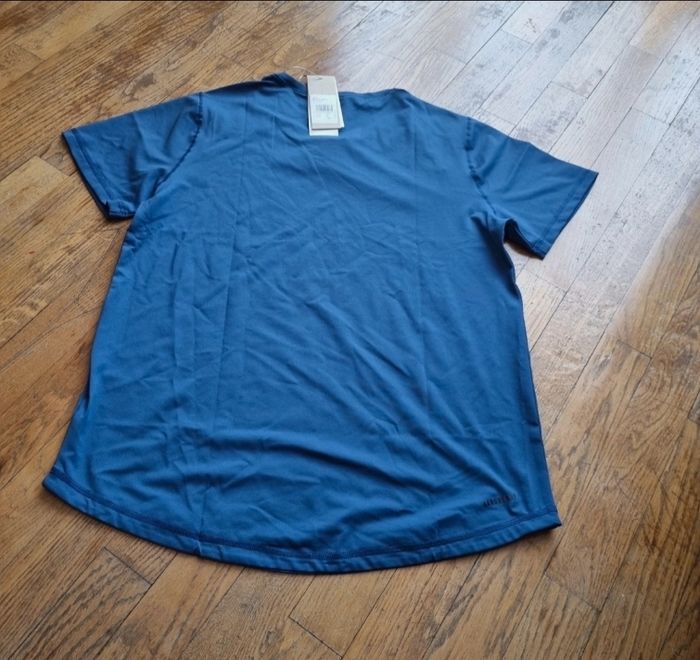 t-shirt manche courte sport adidas couleur bleu taille M 38 Bas légèrement arrondi neuf avec étiquette #tshirtadidas #tshirtbleu #tshirtsport #adidasaeroready #aeroready #taille38 #femme38
