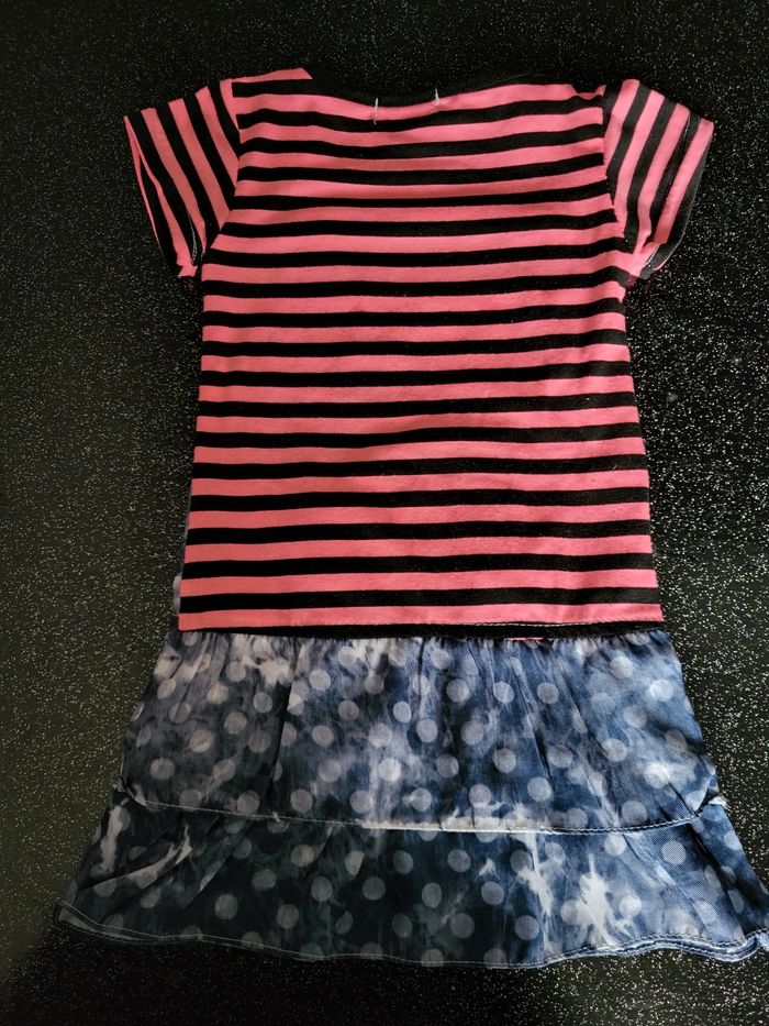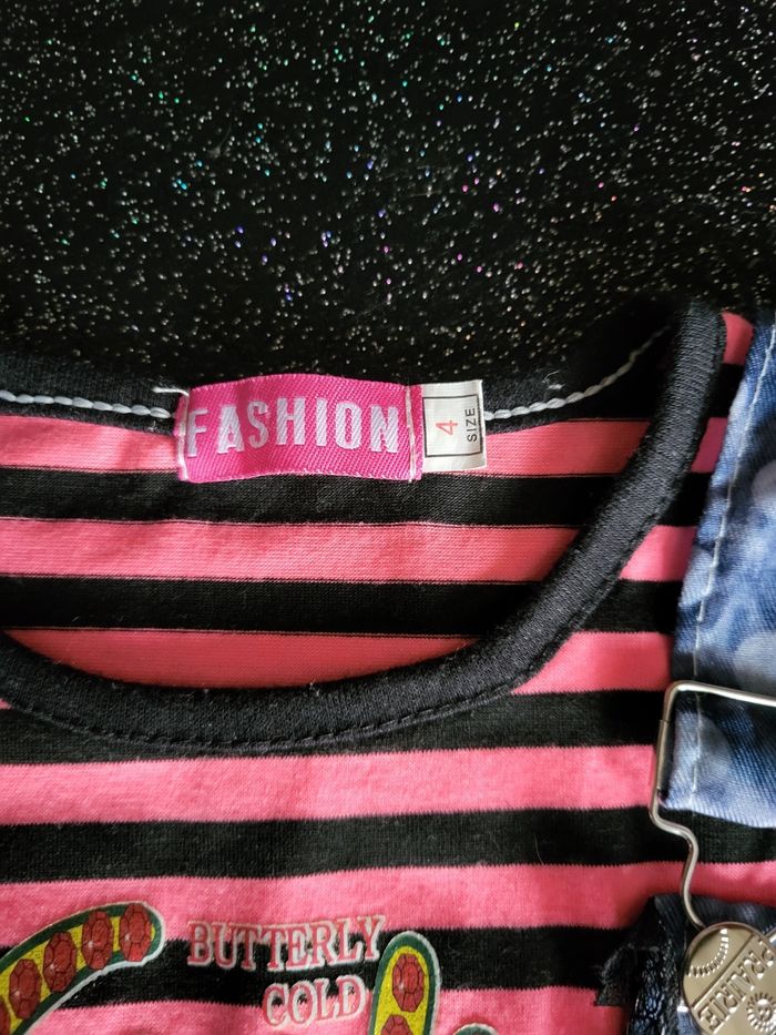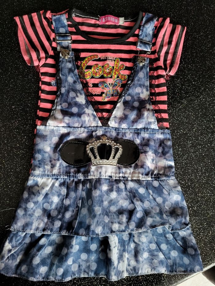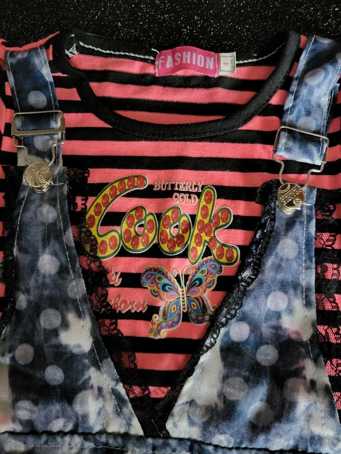 Robe fausse salopette avec fausse ceinture. Rose fluo jeans et noir. Fashion Taille 4 ans mais taille 3/4 ans.