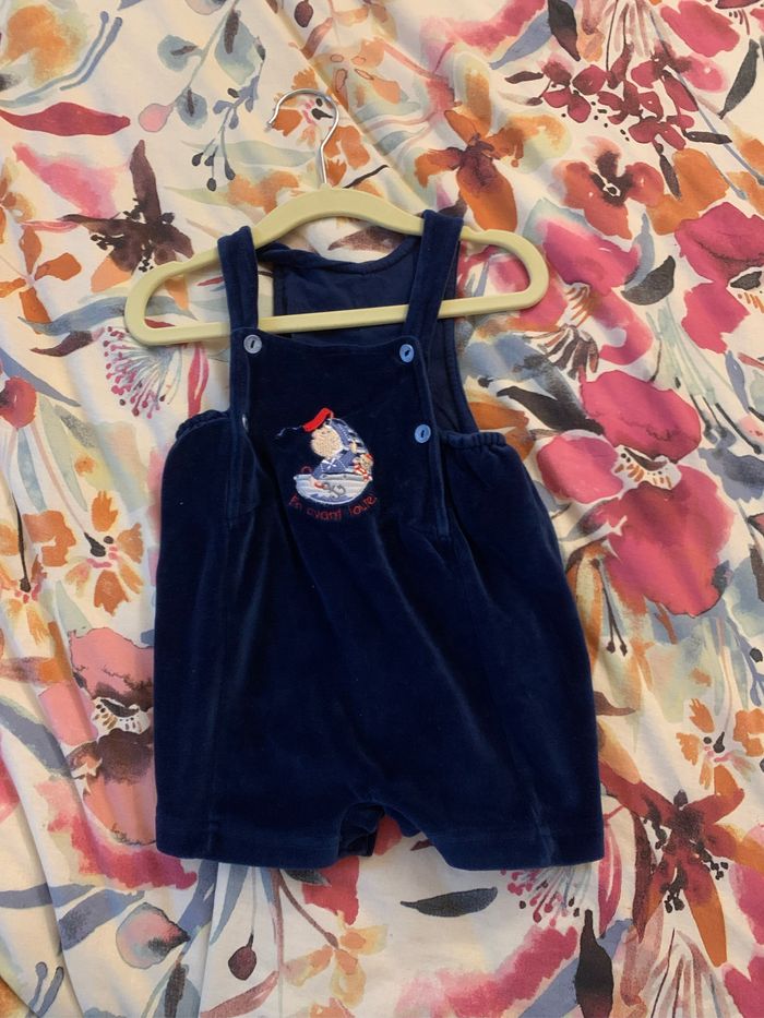 Salopette courte bleu marine en matière velours Taille 6 mois