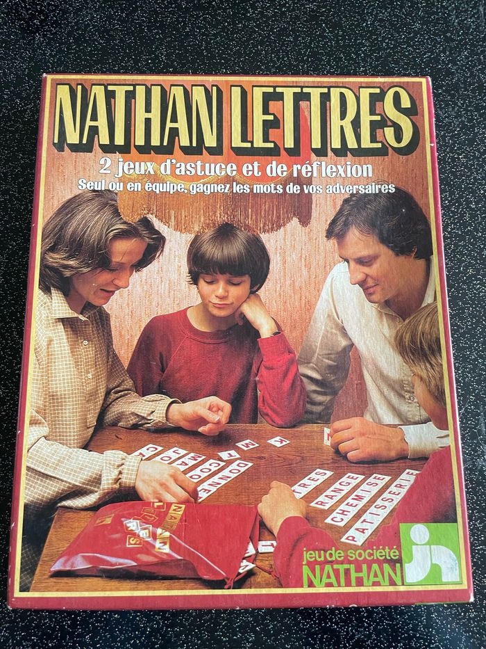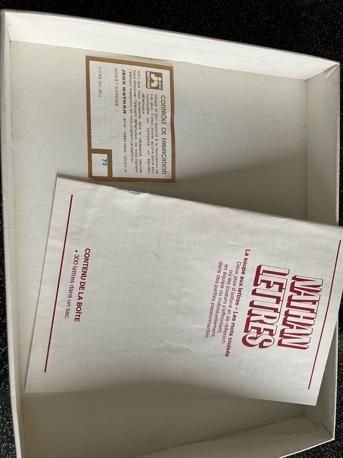 Jeu Nathan lettres , jeu de société Nathan, 1981, complet, quelques traces d’usure mais bon état général Voir photos