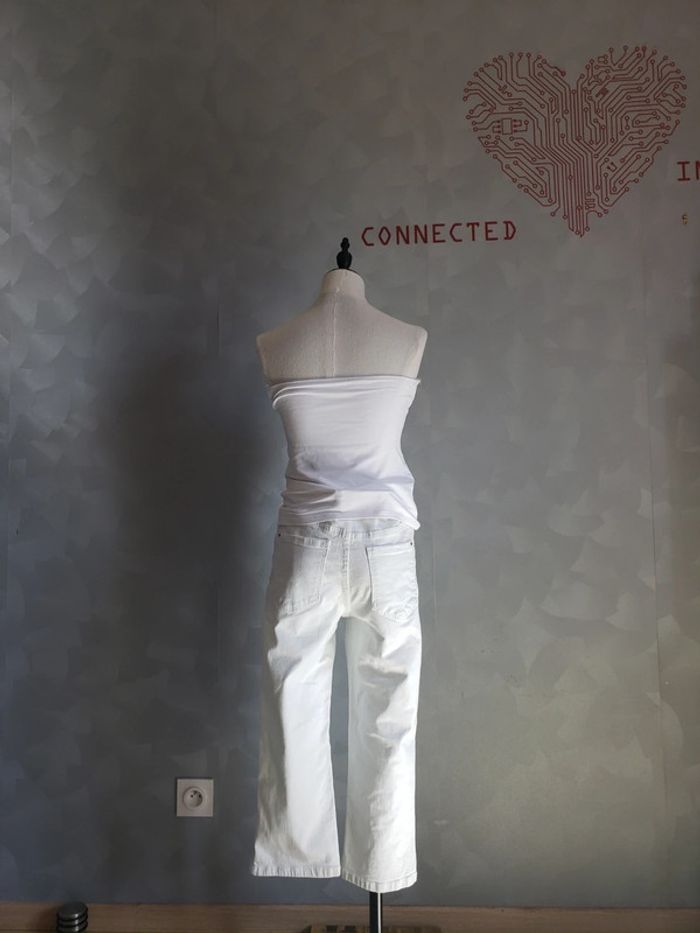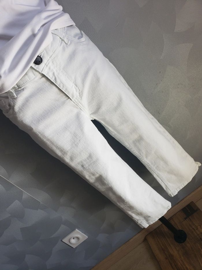 Pantacourt 🎀 en parfait état Couleur : blanc 2 vraies poches a l'avant et a l'arrière Bouton + fermeture éclair Possibilité de mettre une ceinture 1 fente de chaque côté du bas du pantacourt (voir photo 3) Pantacourt (arrive à peu près au 3/4 de la jambe Skinny fit, medium waist (voir photo 6) ⚠️ Le bustier n'est pas vendu avec le pantacout, mais disponible dans mon dressing ⚠️ Taille du mannequin : poitrine = 88cm, taille = 64cm, hanches = 83cm ⛔ Pas de photo porté ⛔ D'autres vêtements femme taille L : #clemencecavalierifemmeL