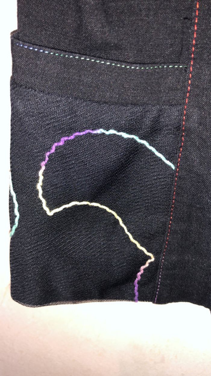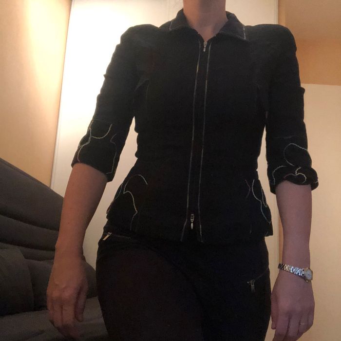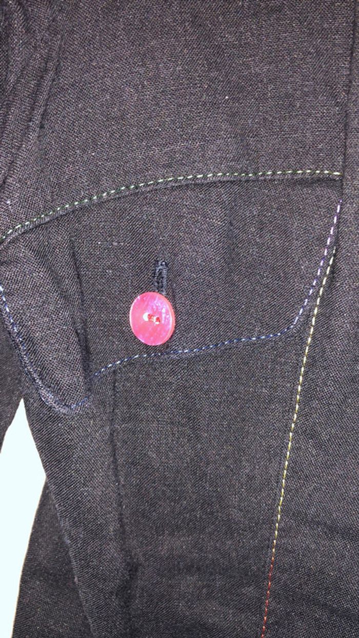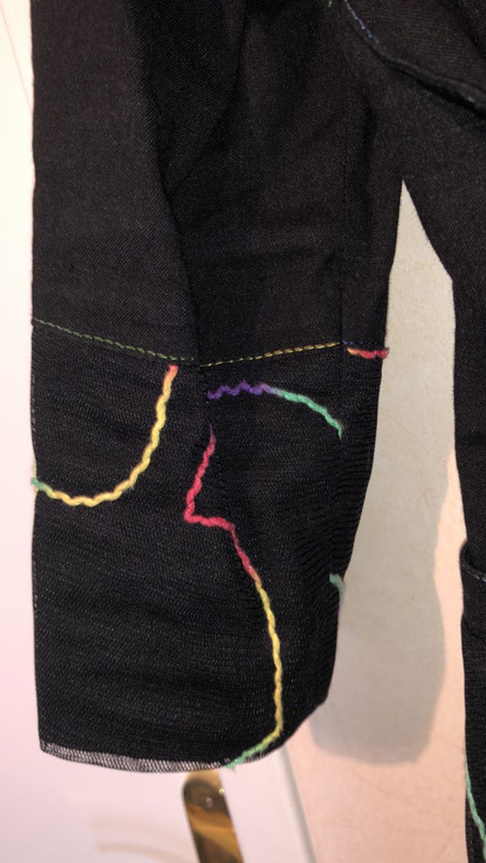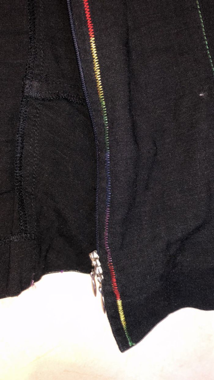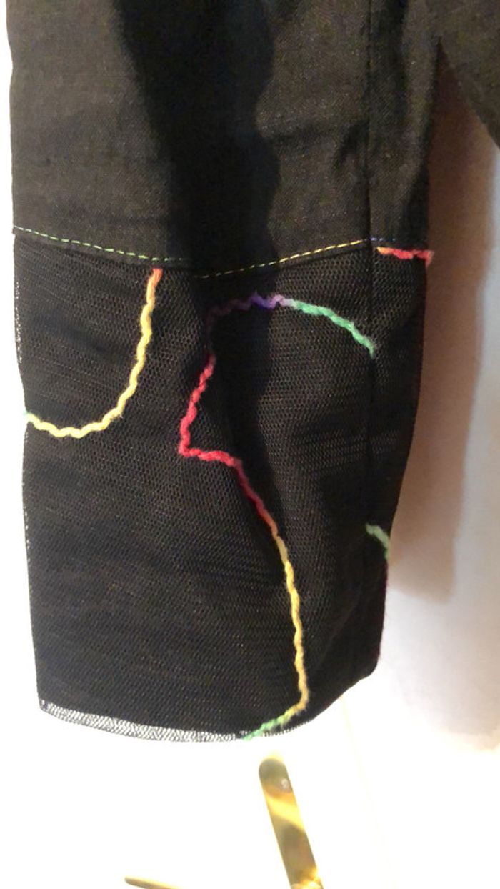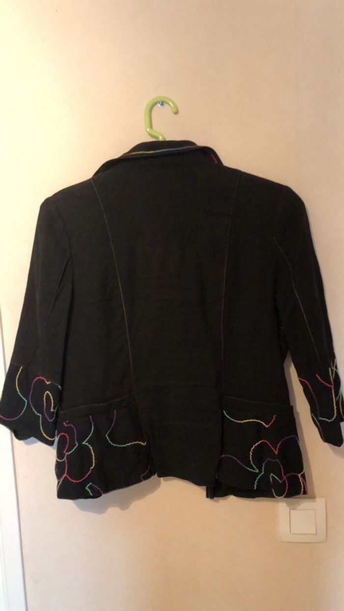 chemise ou blouse avec fermeture manche 3|4 noire 60% lin 38% viscose taille 40 mais plutôt 38 taille petit très peu porté quasi neuf 2poches 2 poches avec bouton avec joli liseret multicolore chic et élégant