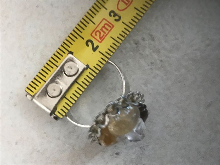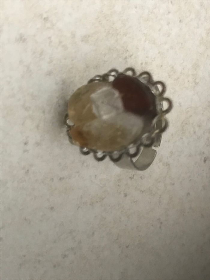 Très jolie bague avec pierre véritable contenant Ambre , Citrine , quartz diamètre 2cm peut s'agrandir , anneau extensible