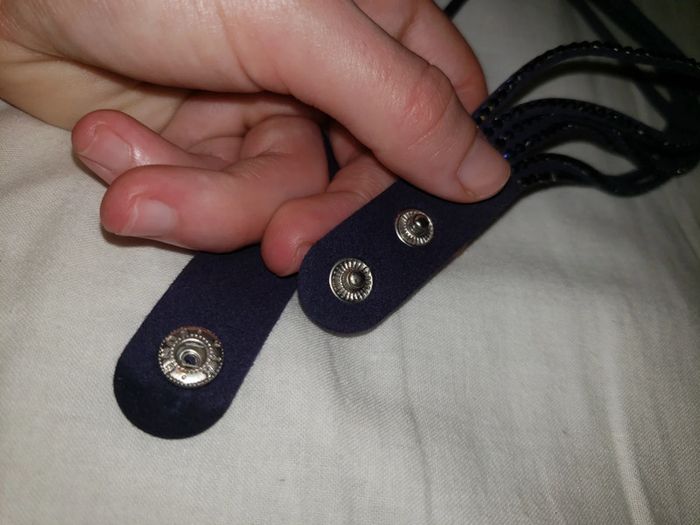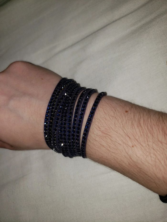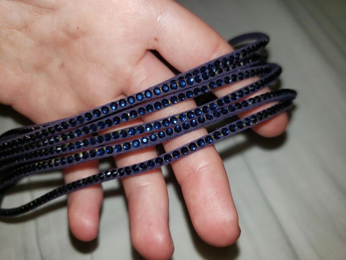 Bracelet bleu foncé avec des perles et 2 boutons à pression On peut en faire un collier, on peut faire 2 tours pour le mettre au poignet (il est long) Matière : style de daim ⛔️ Photo porté, car sinon ça ne rendait pas bien ⛔️ #clemencecavalieribijoux #clemencecavalieri1a2euros