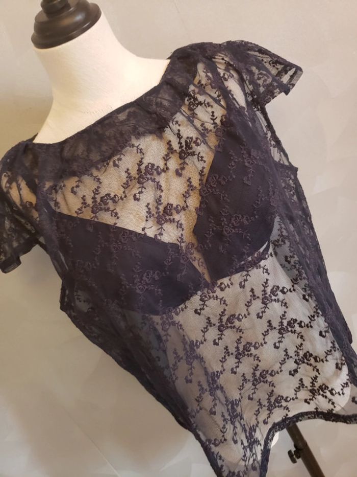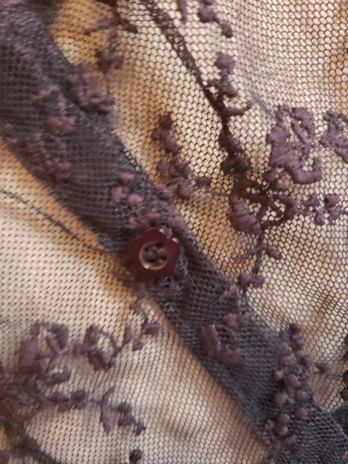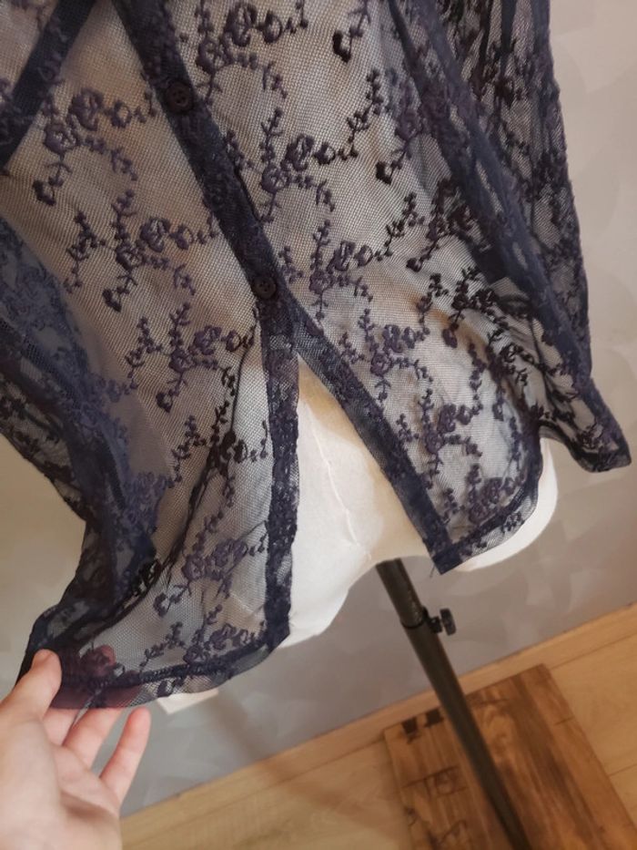 Teeshirt 👚 en parfait état Manchettes (voir photos 1 et 5) Couleur : bleu nuit Motifs : fleur (voir photo 3) On voit les coutures en haut du teeshirt 👚 (voir photos 4 et 8) Le teeshirt 👚 n'est pas fermé jusqu'en bas (voir photo 7) Le teeshirt 👚 ferme avec des boutons (voir photo 9) Taille 1 (voir photo 11) Matière rigide Taille du mannequin : poitrine = 88cm, taille = 64cm, hanches = 83cm ⛔️ Pas de photo porté ⛔️ D’autres vêtements femme taille 1 : #clemencecavalierifemmetaille1