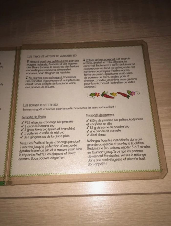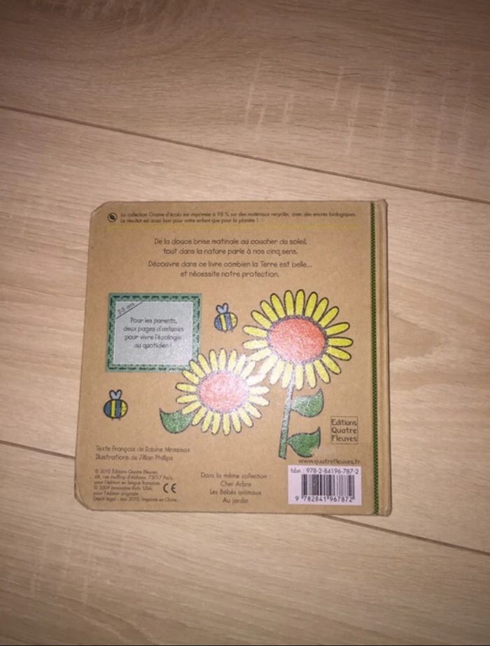 Lot de 2 livres 📘 collection "Graine d'écolo", éditions "Quatre fleuves" de 2 à 5 ans, fabriqué à 98% avec des matériaux recyclés (couvertures et pages rigides) : - "Les cinq sens" : dessin un peu enlevé au coin de devant (voir photo 3), exemple de pages (voir photo 5), conseil pour être écologique (voir photos 6 et 7), dernière de couverture (voir photo 8), ISBN : 978 - 2 - 84196 - 787 - 2 - "Au jardin" : dessin un peu enlevé au coin de devant (voir photo 12), exemple de pages (voir photo 13), conseil pour cultiver son jardin et recettes (voir photos 14 et 15), dernière de couverture (voir photo 16), ISBN : 978 - 2 - 84196 - 788 - 9 ⚠ Ce lot peut être vendu à l'unité : me demander ⚠ D'autres livres, jeux, jouets bébé : #clemencecavalierilivres #clemencecavalierijeux #clemencecavalierijouetsbebe