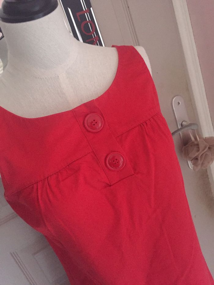 Robe 👗 débardeur mi - longue (arrive à peu près en dessous du genou) en parfait état Couleur : rouge (un peu plus foncé que sur la photo) Boutons et détails au niveau du col (voir photos 2 et 3) Détails au niveau du bas de la robe 👗 (voir photo 5) Fermeture éclair ⚡ sur le côté (voir photo 6) Non fluide Taille 38 soit M (voir photo 9) Taille du mannequin : poitrine = 88cm, taille = 64cm, hanches = 83cm ⛔ Pas de photo porté ⛔ D'autres vêtements femme taille M : #clemencecavalierifemmeM