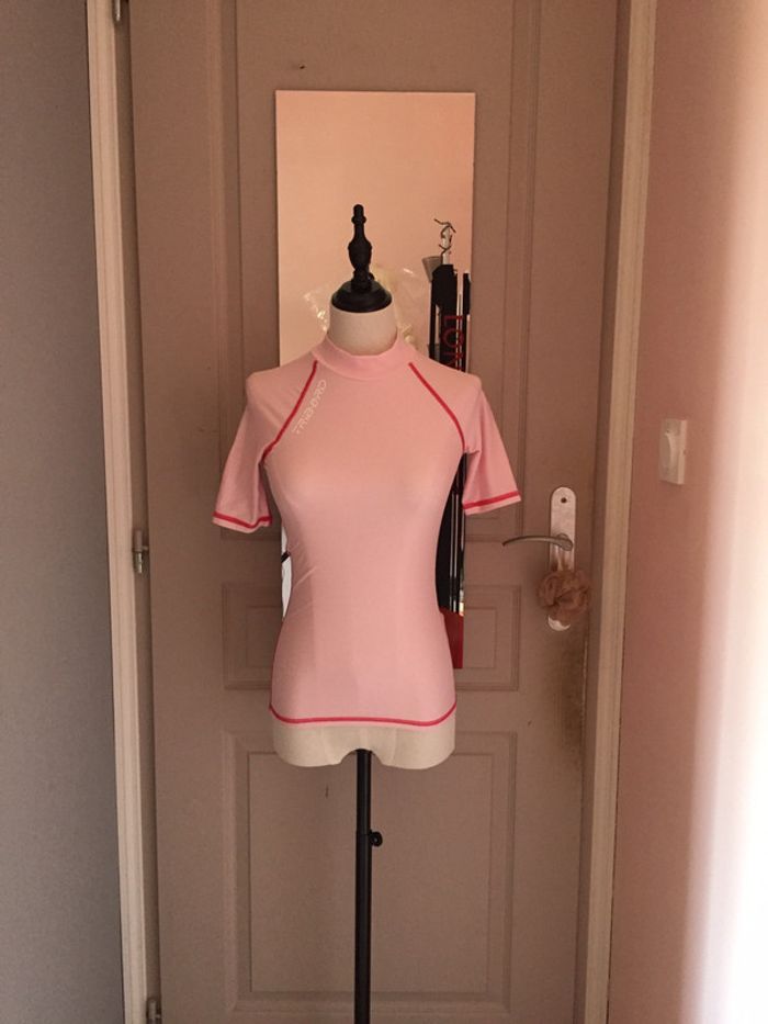 Teeshirt 👚 étanche en parfait état Couleurs : rose clair, rose foncé et blanc Col remonté Manches qui couvrent les épaules Fait pour aller dans l'eau 💧 12ans soit 146-158cm (voir photo 6) Taille du mannequin : poitrine = 88cm, taille = 64cm, hanches = 83cm ⛔️Pas de photo porté ⛔️ D’autres vêtements fille taille 12ans : #clemencecavalierifille12ans