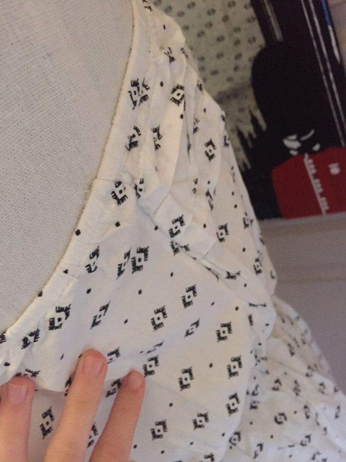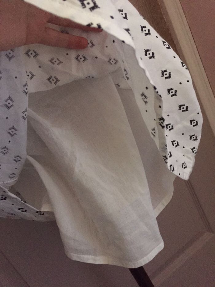 Robe bustier 👗 mi longue (arrive à peu près au dessus du genou) blanche avec motifs noirs (voir photo 2) en parfait état Détail sur le buste qui s'arrête au milieu de la robe 👗 (voir photos 2 et 3) Vendue avec une ceinture qui a des pompons : elle peut être enlevée (voir photo 4) Cintrée à la taille grâce à un élastique (voir photo 4) Robe doublée (voir photo 5) Taille 38 soit M (voir photo 8) Taille du mannequin : poitrine = 88cm, taille = 64cm, hanches = 83cm ⛔️ Pas de photo porté ⛔️ D’autres articles femme taille M : #clemencecavalierifemmeM