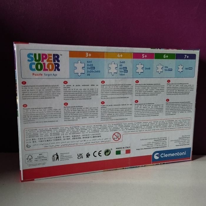 Un puzzle de 104 pièces aux dimensions 38x27 cm spécialement concu pour les enfants afin de les aider à perfectionner leur sens de l'observation et leurs compétences logiques et manuelles. Des images captivantes aux couleurs vives et attrayantes, représentant les personnages les plus appréciés des enfants pour des heures de plaisir entre amis ou en famille. . Âge : à partir de 6 ans . Article neuf et emballé . Colis soigneusement emballé et protégé . Prix ferme et définitif