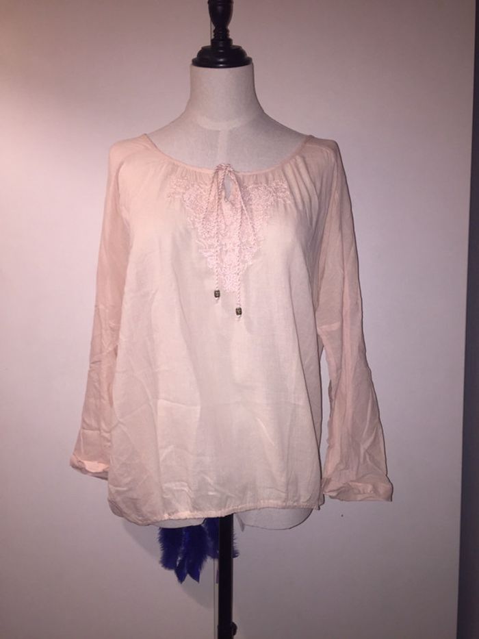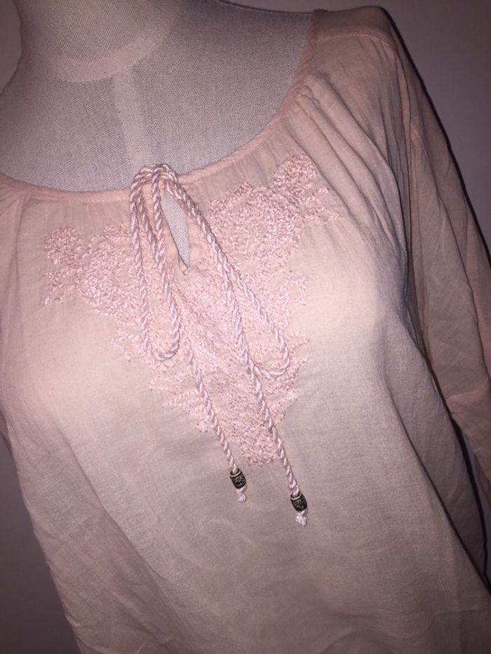 Blouse 🥼 rose pale en parfait état Détails et noeud a faire sur le devant (voir photo 2) Ourlets aux manches qu’on ne peut pas défaire, ils sont cousus (voir photo 3) Élastique au niveau de la taille (voir photo 4) Transparente donc légère (voir photo 5) Pas de taille indiquée : taille unique Taille du mannequin : poitrine = 88cm, taille = 64cm, hanches = 83cm ⛔️ Pas de photo porté ⛔️ D’autres vêtements femme taille unique : #clemencecavalierifemmetailleunique