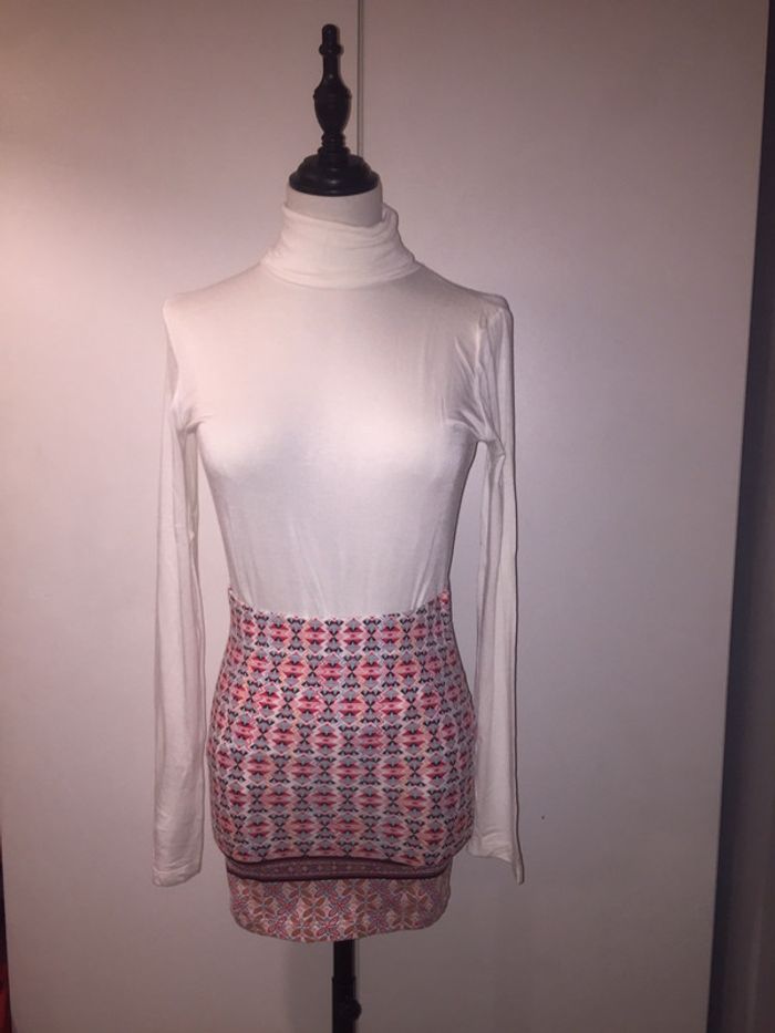 Jupe moulante (arrive à peu près au dessus du genou) motifs géométriques en parfait état Différentes couleurs : blanc, orange, bleu clair, rose clair, marron, rouge ⚠️ Le teeshirt col roulé n’est plus disponible ⚠️ Taille du mannequin : poitrine = 88cm, taille = 64cm, hanches = 83cm ⛔️ Pas de photo porté ⛔️ D’autres articles femme taille S : #clemencecavalierifemmeS