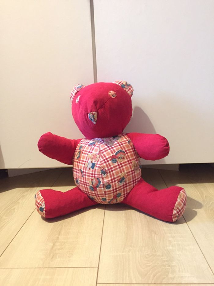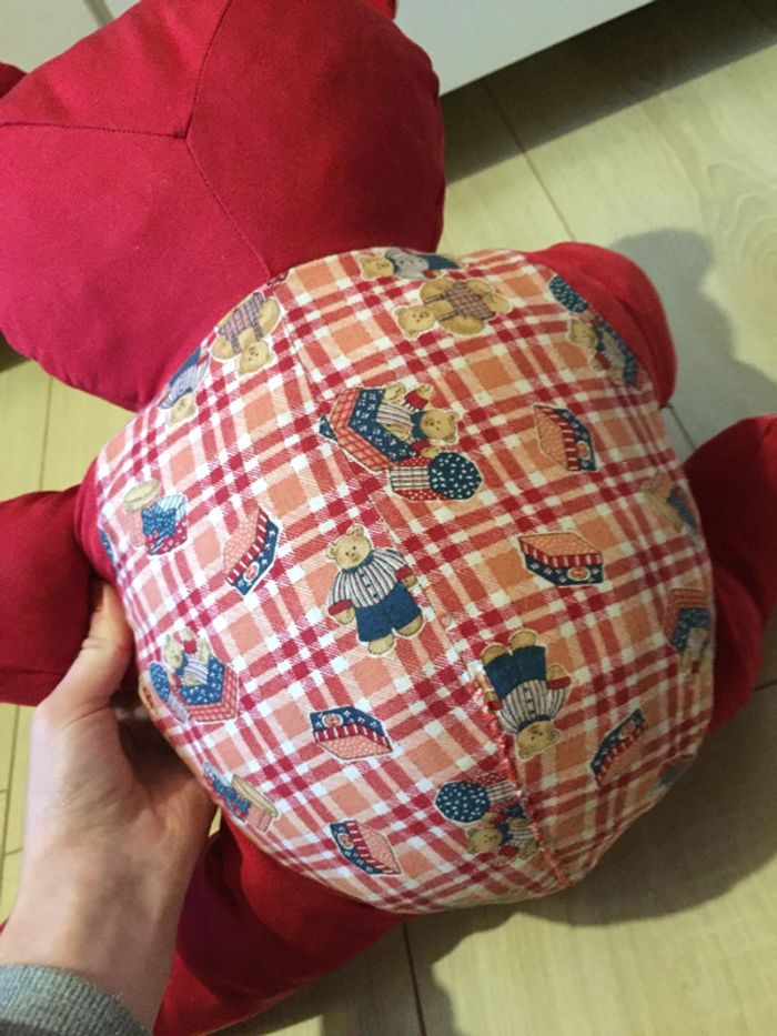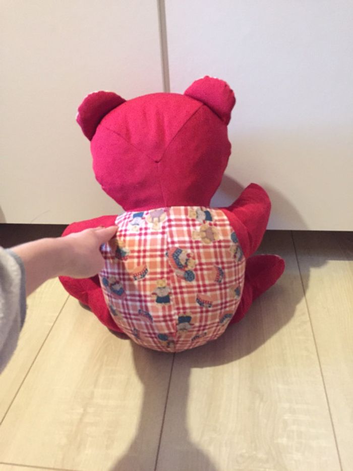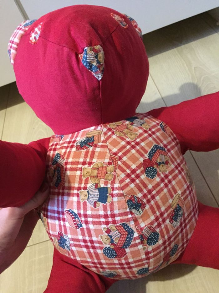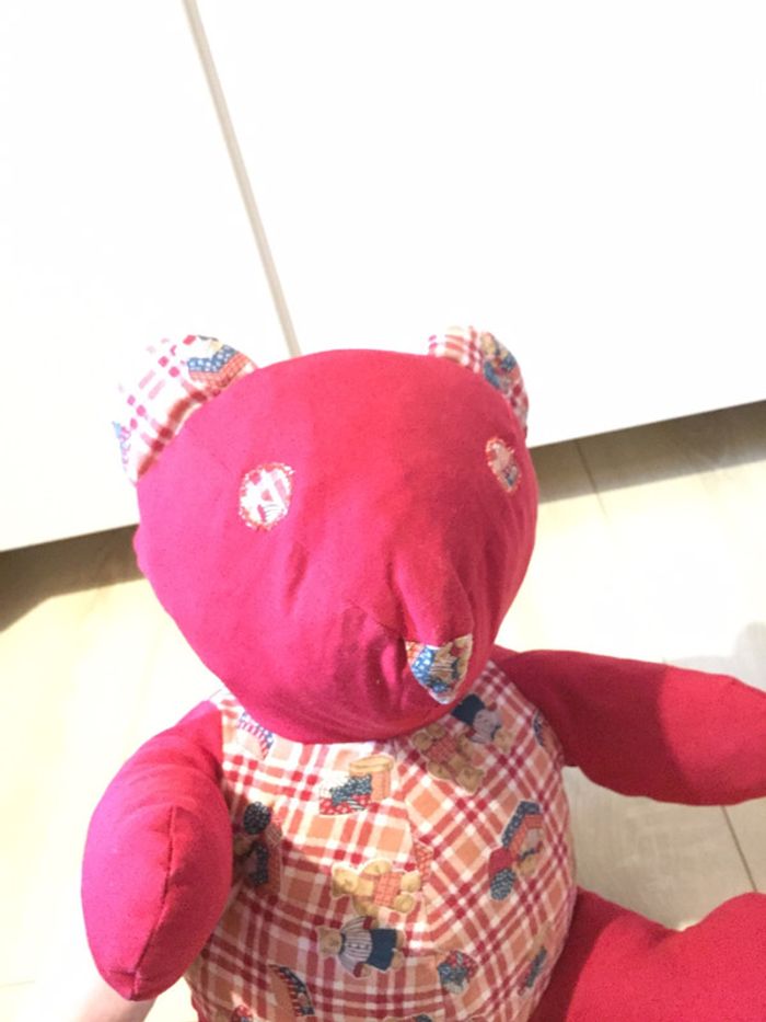 Peluche 🧸 nounours 🧸 rouge vif en parfait état ! Le tissu est le même pour les oreilles 👂, yeux 👀, nez 👃, ventre, dos, pieds 🦶 #clemencecavalieripeluches