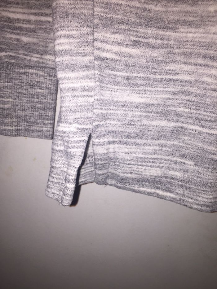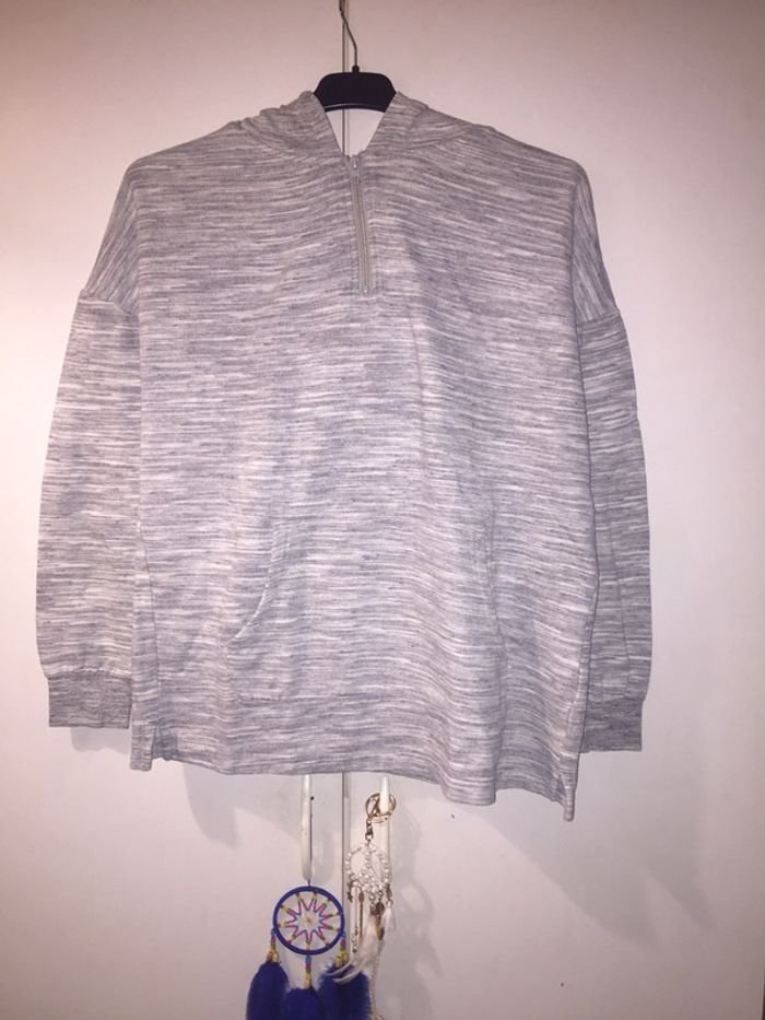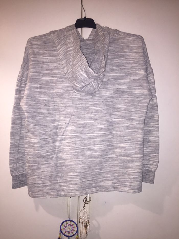 Pull à capuche gris avec « reflets » blancs/gris foncé : - 1 poche au milieu et devant le pull (voir photo 1) - Resserré aux poignets (voir photo 3) - Échancrure à la taille (c’est fait exprès : voir photo 4) - Couture de l’épaule est plus basse que « normalement (voir photo 5) - L’intérieur du pull est en moumoute ainsi que les manches (voir photo 6) mais PAS la capuche (voir photo 7) Taille XS, 14 ans, 158-164 cm ⛔️ Pas de photo porté ⛔️ #clemencecavalierihommeXS