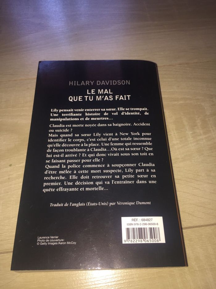 Livre « Le mal que tu m’as fait » d’Hilary DAVIDSON en très bon état (pas de pages déchirées ni écrites) juste une petite tache jaune en dessous du livre (voir photo 4) Réf : 684827 ISBN : 978 - 2 - 298 - 06500 - 8 #clemencecavalierilivres