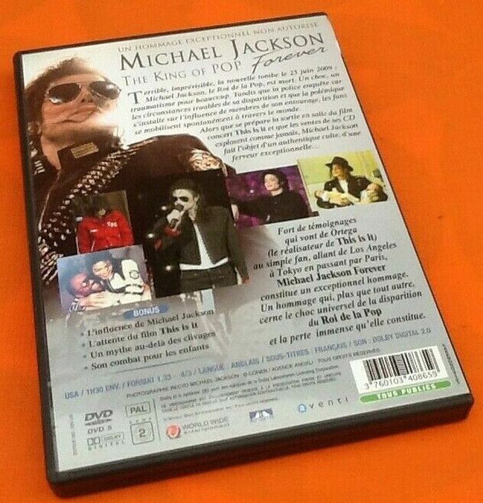DVD Michael Jackson Forever The King of Pop (2010) Antartic Terrible, imprévisible, la nouvelle tombe le 25 juin 2009 : Michael Jackson, le Roi de la Pop, est mort. Un choc, un traumatisme pour beaucoup. Tandis que la police enquête sur les circonstances troubles de sa disparition et que la polémique s’installe sur l’influence de membres de son entourage, les fans se mobilisent spontanément à travers le monde. Alors que se prépare la sortie en salle du film concert « This Is It » et que les ventes de ses CD explosent comme jamais, Michael Jackson fait l’objet d’un authentique culte, d’une ferveur exceptionnelle…