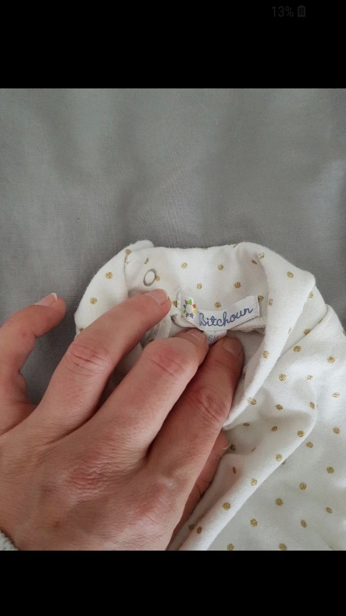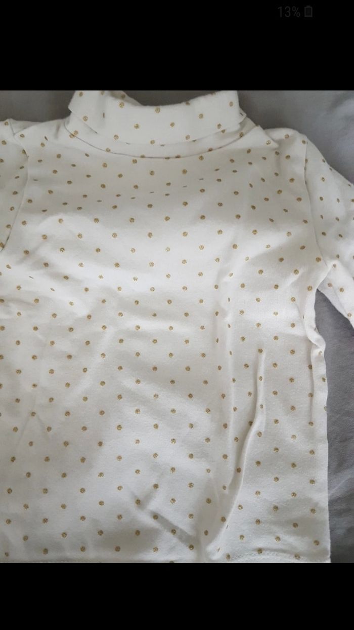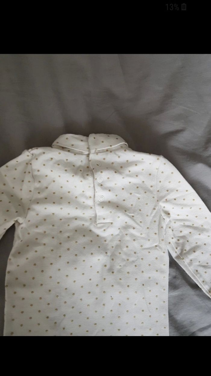 Tee shirt col roulé blanc creme a point doré, taille 6 mois