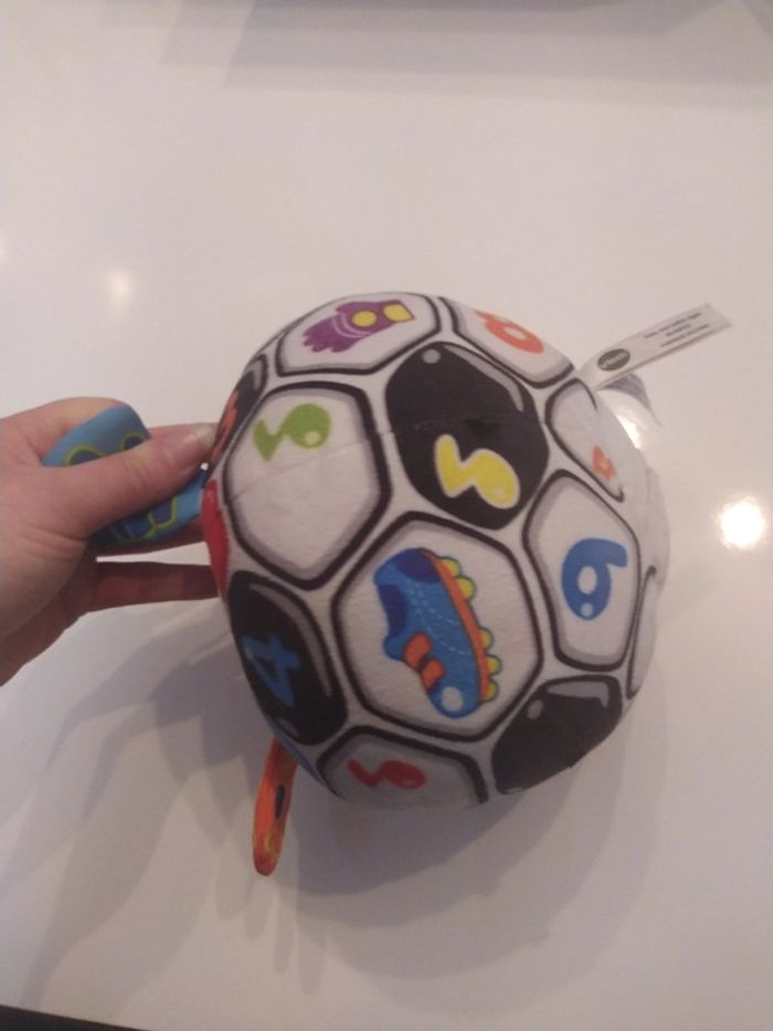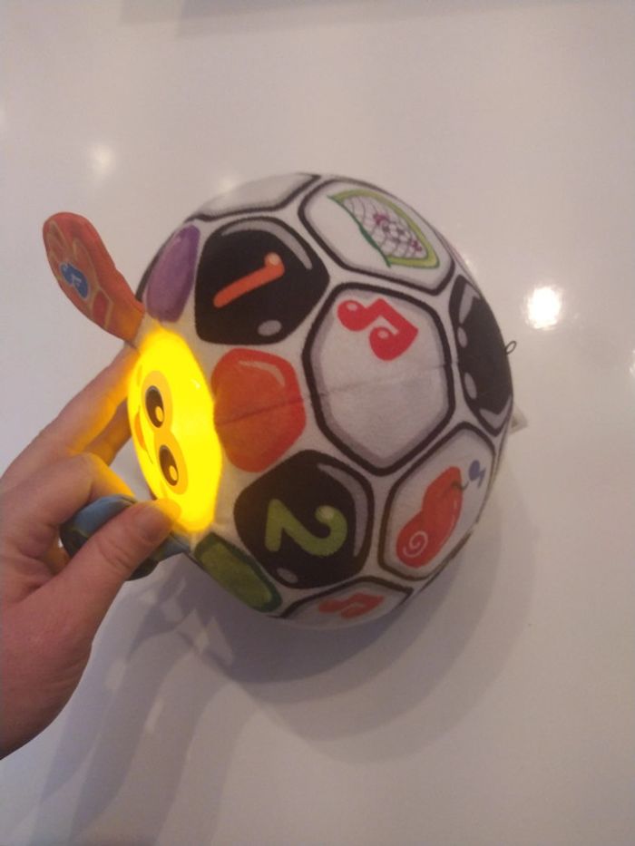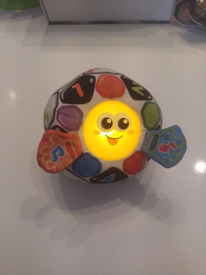 Ballon musiques, phrases, lumière, bruit de sifflet Très bon état général Emplacement au niveau des piles légèrement taché (voir photo) Vendu sans pile car je n utilise que du rechargeable mais chaque jouet est testé avant envoi Retrouvez les jouets ici --> #celikyljouets